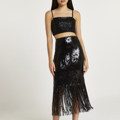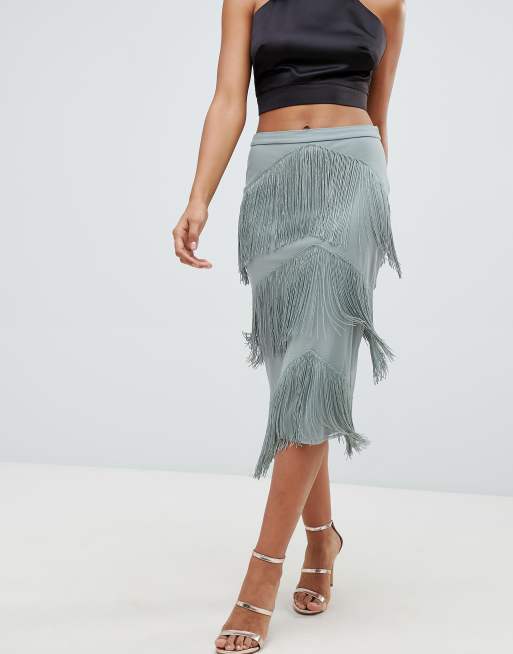 Style with a crop top and green slip-on heels for a combo were crushing on. Featuring a rust material with a tassel hem and a midi length we are in love. Check this stunning midi skirt into your wardrobe to bulk up your collection of vintage-inspired closet staples that you can mix and match with endless pieces. Womens Tassel Maxi Skirt Printed Rayon Crepe Style Number. Black Tassel Hem Detail Halterneck Playsuit. Featuring a black material with a tassel hem design and a midi length. Whether youre hitting that all-important party and getting ready for date night do it in a tassel skirt to ensure killer attitude and an on-point look. Shop everything from frill skirts on figure shaping midis extra glam rara skirts with tassel fringing through to day-to-day denim numbers with subtle a subtle fringe hem. Model Height - 5ft 6.