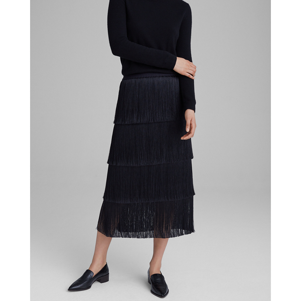 Black Tassel Hem Detail Halterneck Playsuit. Model Height - 5ft 6. The texture looks like soft kisses planted all over the skirt. Featuring a flowing tiered skirt and stunning pattern. Shop everything from tassel detailing on figure shaping midis extra glam sequin skirts with tassel fringing through to day-to-day denim numbers with subtle a subtle fringe hem. Style with a crop top and green slip-on heels for a combo were crushing on. Complementary to most body types a mid length skirt can be styled in so many ways.